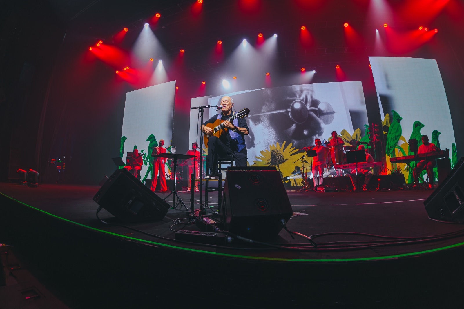 O repertório revisita momentos importantes da trajetória do músico, incluindo composições conhecidas do público como \”Aquarela\”, \”O Caderno\”, \”Tarde em Itapoã\” e \”Regra Três\”. O espetáculo conta com banda completa, direção musical renovada e a participação da cantora Camilla Faustino, que divide alguns números com Toquinho.